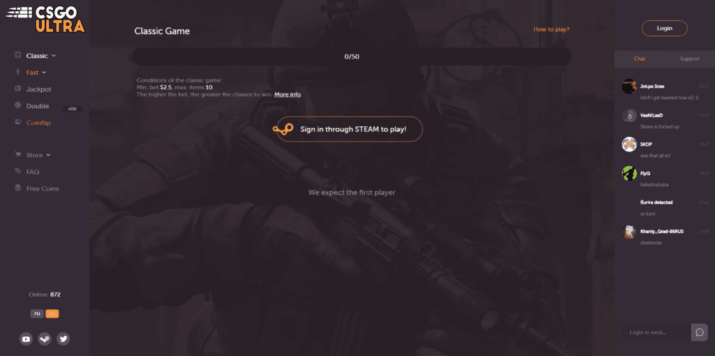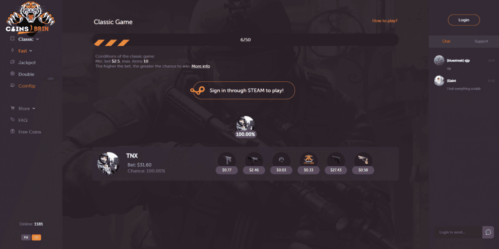 - Cash out your winnings back to your account. Since all of this was controlled by an unknown third party (whoever owned the website) and not the actual game, there was very little trust on whether or not one could actually win the "rarer" items (anything that costs more than the case itself).